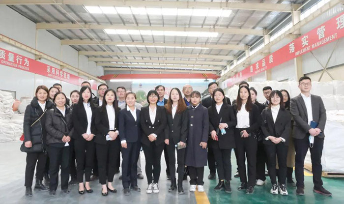 在理論知識學(xué)習(xí)后,為加深對產(chǎn)品生產(chǎn)線與產(chǎn)品專業(yè)知識的深入了解,行政人事部組織新員工驅(qū)車前往工廠進行了實地學(xué)習(xí)。在不定形耐火材料生產(chǎn)車間,白總先對新員工的到來表示了熱烈的歡迎,并介紹了工廠的生產(chǎn)模式與制度。程廠長就不定形耐火澆注料與可塑料的生產(chǎn)流程進行了詳細的講解,從原料的采購到碎石分級,從化學(xué)物理性質(zhì)分析,到樣品制作與抽檢,及其施工方式與鑒別方式一一進行了詳細介紹。